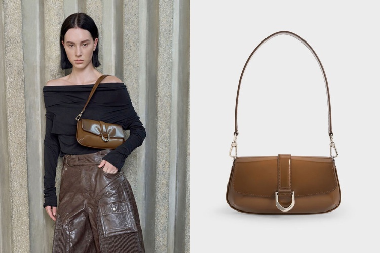 喜歡真皮包款的質感嗎?這款 Gabine 絨面小牛皮肩背包,為深棕色調注入一絲奢華光澤,其銀色金屬釦是點睛之筆,為整體設計增添現代女性的自信形象。East-West 剪裁順應當下趨勢,讓這款肩背包在造型與實用性上取得完美平衡。值得一提的是,這只「東西包」源自於寫著「C&K」縮寫的品牌高端系列,從材質選擇到工藝製作,無不彰顯出 Charles & Keith 對高端品質的不懈追求。(商品售價 NT$ 3,990元)