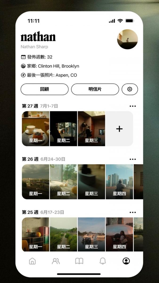 用戶可以每週將照片和影片上傳至「本週相簿」,讓大家養成隨時紀錄生活的習慣,其他好友也能看到最近四週的上傳內容,過期的內容則需透過分享鑰匙解鎖。