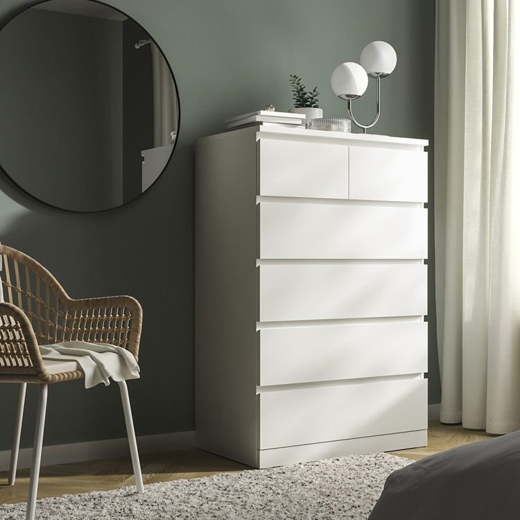 「MALM 抽屜櫃」以俐落簡約的外型搭配百搭的白色外觀,成為深受消費者喜愛的經典商品,更是IKEA熱賣榜單上的長青款。其設計擁有6個寬敞抽屜,大容量收納空間讓你輕鬆整理換季衣物、書籍及各類生活用品,實用又時尚。