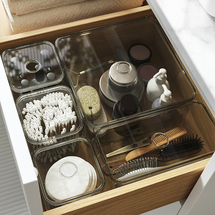 「VISSLAÅN 附蓋收納盒 5 件組」自今年上市以來,已成為無數主婦的心頭好!以實惠的價格即可一次入手五件組,專為解決換季彩妝與保養品尺寸不一的收納難題。不同尺寸設計完美適配各類抽屜,不僅能井然有序地收納彩妝與保養品,還能靈活用於整理廚房用品,多功能實用又貼心!