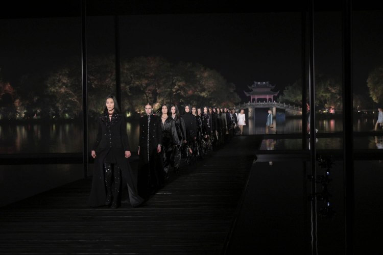 大秀步入尾聲,西湖霧氣冉冉升起,中國傳統大鼓的滂薄在夜晚敲響,搭配上電子樂歌手 Kelly Lee Owens《Higher》音樂,中西融合卻極其和諧的曲調,就如本季的大秀,Chanel 創意團隊以東西方迥異的文化碰撞,呈現出服裝獨樹一格的樣貌。