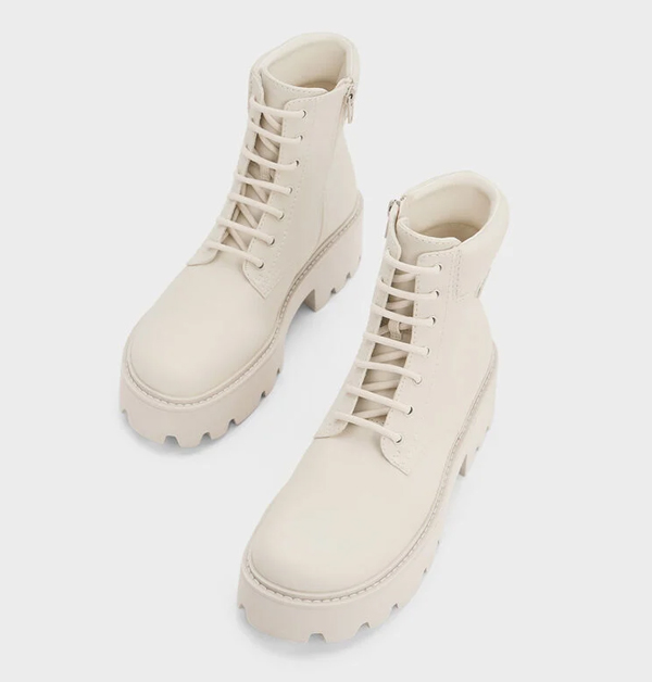 小CK冬靴推薦4:石灰白「Ripley」綁帶厚底軍靴,NT$ 3,190