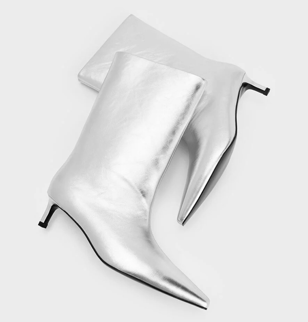 銀色皮革的前衛科技感,帶儂粉們一腳踏上依舊火紅的金屬感時尚風潮;而青春又帥氣的寬筒設計,最適合在年末派對時,以超短迷你裙搭配展現出個人的大膽品味。
