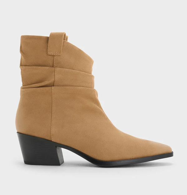 小CK冬靴推薦3:黃褐色麂皮抓皺尖頭短靴,NT$ 2,790