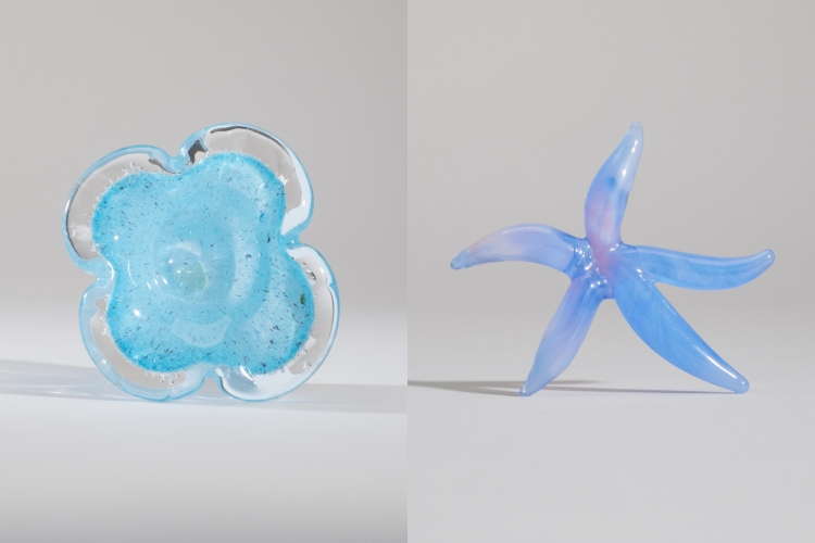 其中,穆拉諾玻璃的創意工坊尤為引人注目,參與企劃的三間工坊將代代相傳的技藝與大膽創新的設計理念融合,呈現令人為之一亮的玻璃藝術。Laguna~B以奪目的條紋花瓶詮釋穆拉諾玻璃的繽紛與流動之美,而Bruno Amadi則以精緻的海星造型捕捉海洋的靈韻與透明質感。每家工坊皆展現不同的創新活力,唯一不變的是為傳統工藝注入新生命,與Bottega Veneta的品牌精神不謀而合。