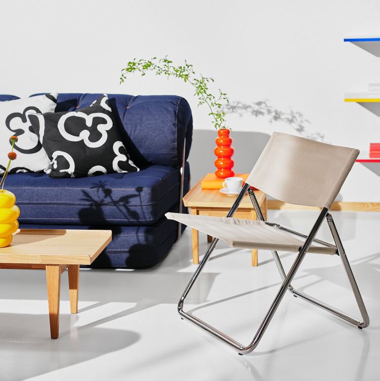 另一個焦點設計傢俱,莫過於全新的 MOFALLA 折疊椅,它源於 1978 年 IKEA 推出的 COX 折疊椅,卡其色的布料,帶入一抹沉穩內斂的氣息,跳脫一系列較於繽紛的傢俱主線,成為另一個重要收藏作品。