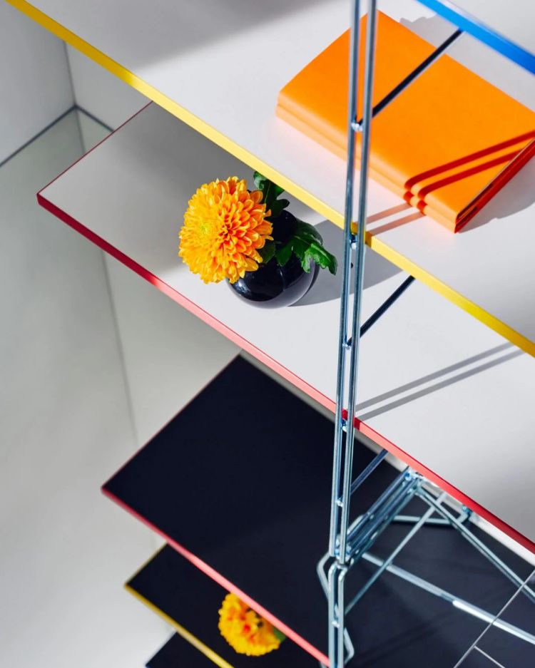 在全新第六代 Nytillverkad 系列裡,更多了一項新的項目「BYAKORRE 層架」。它源於 1985 年 IKEA 推出的 GUIDE 層架,透過色彩繽紛的開放式層架單元,層架的邊緣提供:藍、綠、黃,以及紅色,透過可翻轉的層架組合,為家具增添居家趣味性,可自行根據使用需求與色彩傾向,訂定適合自己的層架組合。