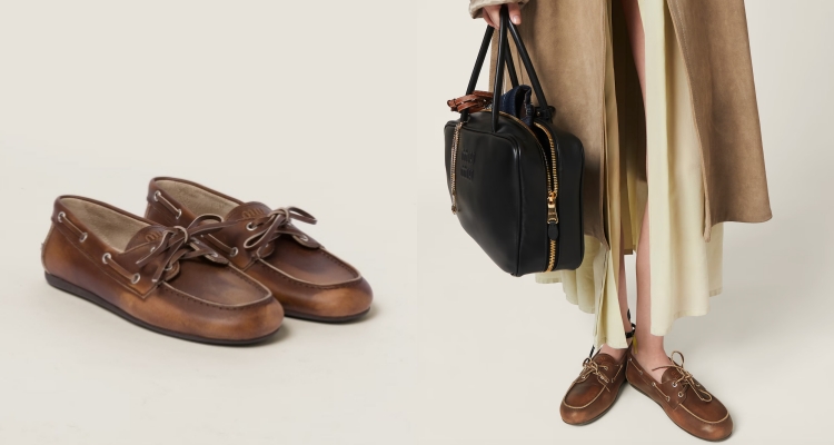 提到可愛俏皮的船型樂福鞋,Miu Miu無疑是首選。這款鞋的亮點在於其獨特的漂染效果,為整體造型增添復古風情。前方的綁帶設計巧妙融合當季流行的學院風格,既別緻又充滿活力,輕鬆搭配各種穿搭,精緻可愛的女孩們不能錯過了!(商品價格 NT$ 32,500 元)