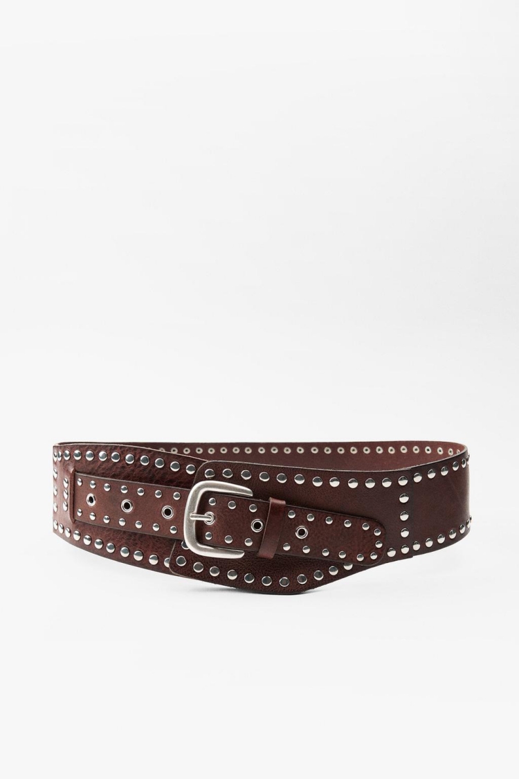 Zara「造型腰帶」推薦6:仿舊效果鉚釘寬腰帶
