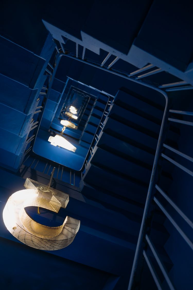 在既有的結構限制下,建築師蘇子崴以法國藝術家伊夫·克萊因(Yves Klein),其聞名的「克萊因藍」作為啟發,以及台灣特有種「台灣藍鵲」為靈感,從外觀立面到室內空間,將顏料一氣呵成包裹於整個建築,並強化完整性,在 10 層的樓高及地下室裡,規劃 56 間客房,從一樓的金屬感接待空間、回收再利用的鋼製樓梯、再到藍白色調的睡眠空間,每一處都充滿驚喜,形塑具有詩意的空間。