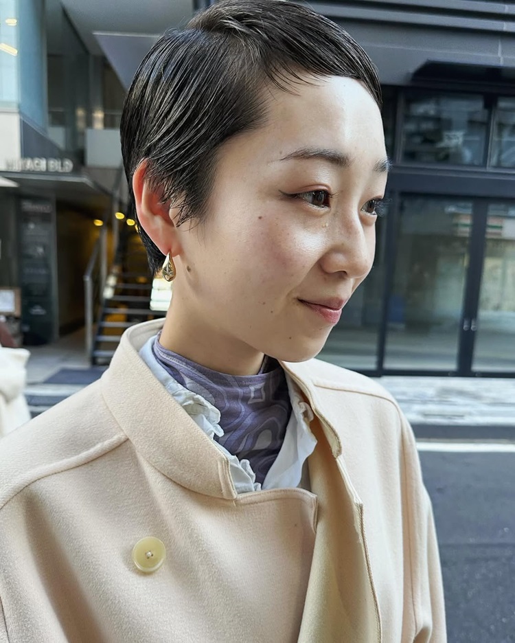 輕熟齡女孩期待髮型俐落、兼具女人味,而這款有著長瀏海曲線、貼合頭形的極短髮造型,則是妳進階性感熟女的第一步!輕盈的髮量,搭配低層次剪裁,讓秀髮能更貼合頭形與後頸;造型上可以運用油感造型品、髮臘抓出髮絲感,亦或者染上奶油金髮色,時髦又耐看。