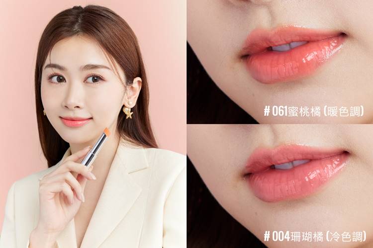 蜜桃色調是元氣感女孩的標誌色彩,特別適合追求少女感俏皮妝容的人!暖色調 #061 蜜桃橘以橘粉色點亮雙唇,顯氣色又能展現飽滿的陽光色澤象,綻放活力氣息;冷色調 #004 珊瑚橘則在甜美中加入幾分調皮感,簡直是約會必備單品。