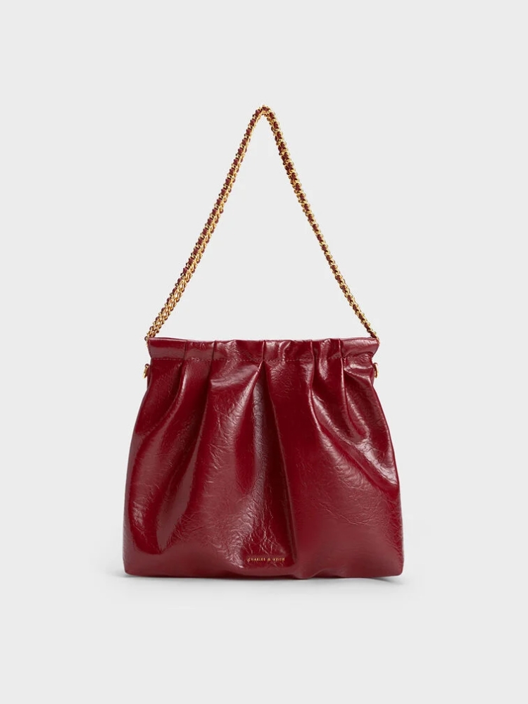 小CK「酒紅色包款」推薦7:Duo 細鍊抓皺流浪包