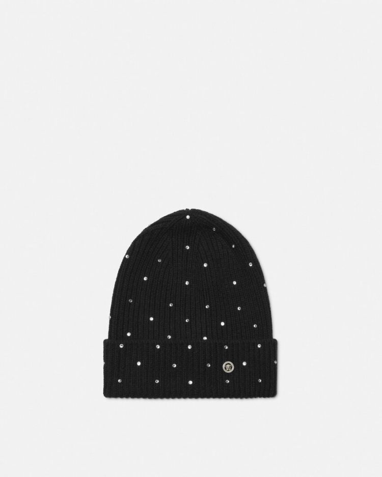Versace近幾年越來越能在招牌性感狂野風和年輕化設計之間找到平衡點,好比這款毛帽以全黑色調為基礎,帽身妝點上閃閃發亮的水晶飾釘,小巧尺寸讓滿版設計更加耐看,也巧妙襯托出帽簷上的美杜莎銀色金屬Logo,簡約低調又不失華麗風範!(價格:NTD 25,000)