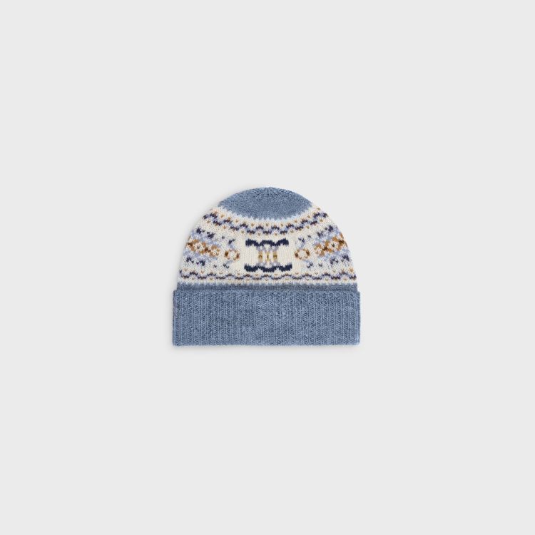 Celine向來很懂時髦女生喜歡什麼,這款毛帽採用冰藍和全白色調,交織出不一樣的俏麗風範,凱旋門Logo以幾何針織圖騰重新詮釋,更巧妙點綴上一抹芥末黃,來呼應熟悉的金屬Logo風格,既充滿玩心巧思,也相當應景冬日氣息!(價格店洽 )