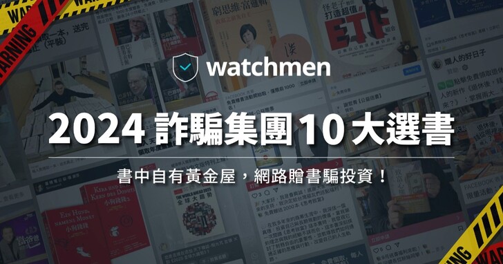 根據 Watchmen 的觀察,詐騙集團選書可謂做足功課、精挑暢銷著作,最常被盜用於詐騙的書籍名單前十名依序為小狗錢錢、思考致富、晶片戰爭、蒙格之道、執行長日記、賺錢也賺幸福、時勢、逆思維、隱性潛能、富爸爸窮爸爸。從詐騙集團盯上的書單來看,投資理財佔大多數,其次則為成長性思維叢書。