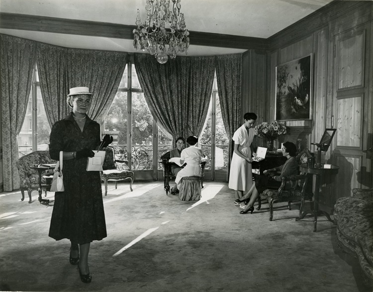 圖上:嬌蘭護膚美顏中心,創設位於巴黎香榭麗舍大道68號精品店的二樓,來此體驗的名媛貴婦可在此接受護膚諮詢並享用茶點,並可透過一旁的凸肚窗俯瞰著香榭麗舍大道,至今已超過百年歷史的旗艦店已被列為法國歷史文化遺產,至今仍服務全球絡繹不絕的顧客。