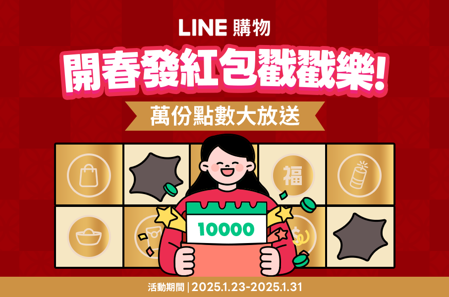 4. 因系統作業時間限制,若於活動期間封鎖「LINE購物」官方帳號,將無法收到獎勵訊息,且無法補發封鎖期間本可獲得之獎勵訊息,若獲得獎勵資格因此受影響,不得異議 。