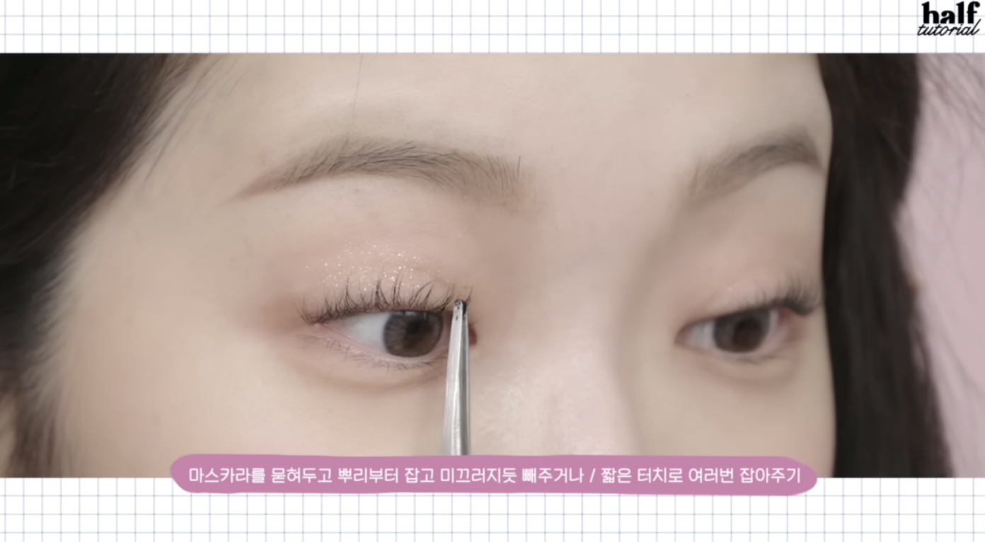 「太陽花睫毛」最核心的重點在這!準備一個圓頭的鑷子,將睫毛一束一束由根部往上夾起~這步驟需要高度專注力,注意可別戳到眼睛了><