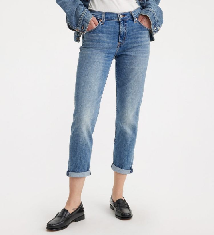 男友褲顧名思義靈感來自於「男朋友的褲子」,因此整體版型較為寬鬆休閒,大多採用低腰或是中腰設計,造型上常融入破洞、水洗、流蘇或是反摺等細節做出變化,給人一種率性、街頭感的美式風格,這種褲型對於大屁股、大腿較粗或棉花糖女孩來說非常友善,適合搭配帆布鞋、休閒鞋,打造輕鬆舒適的日常造型。