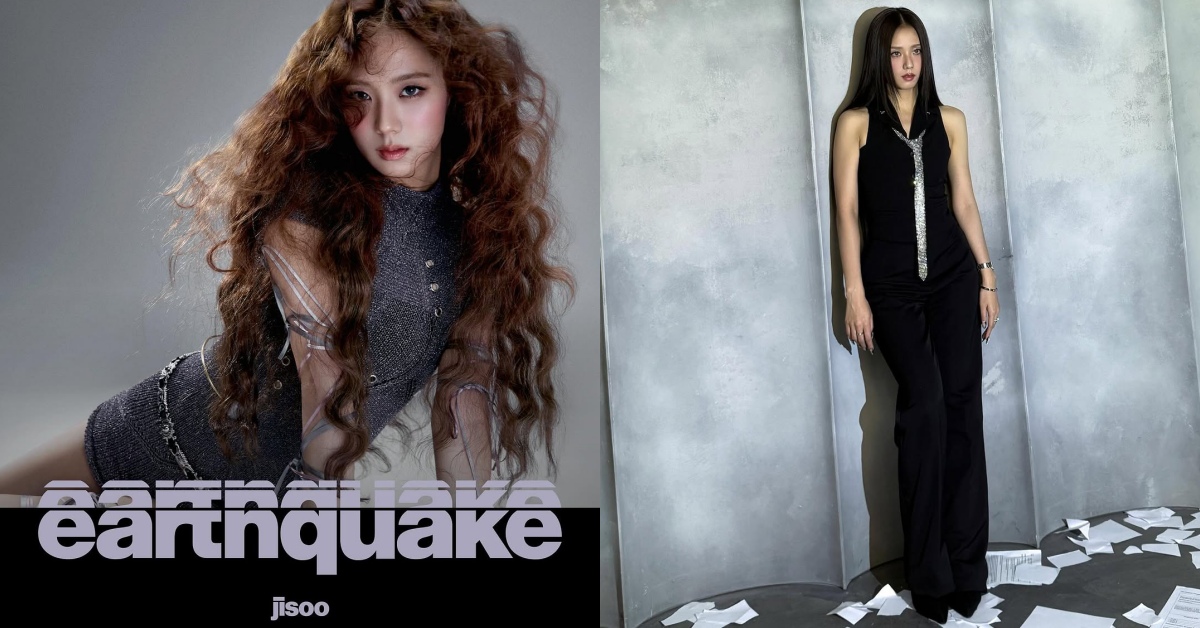 Jisoo 在〈Earthquake〉MV 中徹底顛覆以往形象,化身冷艷神秘的女特務。由辦公室場景開場,隨著劇情轉折,Jisoo在隱秘交易、緊張追逐中演繹動作電影般的氛圍,搭配黑白造型與大膽妝容,帥氣與魅惑兼具。她開著跑車、站上測謊機熱舞,甚至挑戰藍色亮片眼妝,每個畫面都充滿戲劇張力,也預告著全新時尚潮流的來臨,完整近5分鐘的內容緊湊刺激,令人目不轉睛!