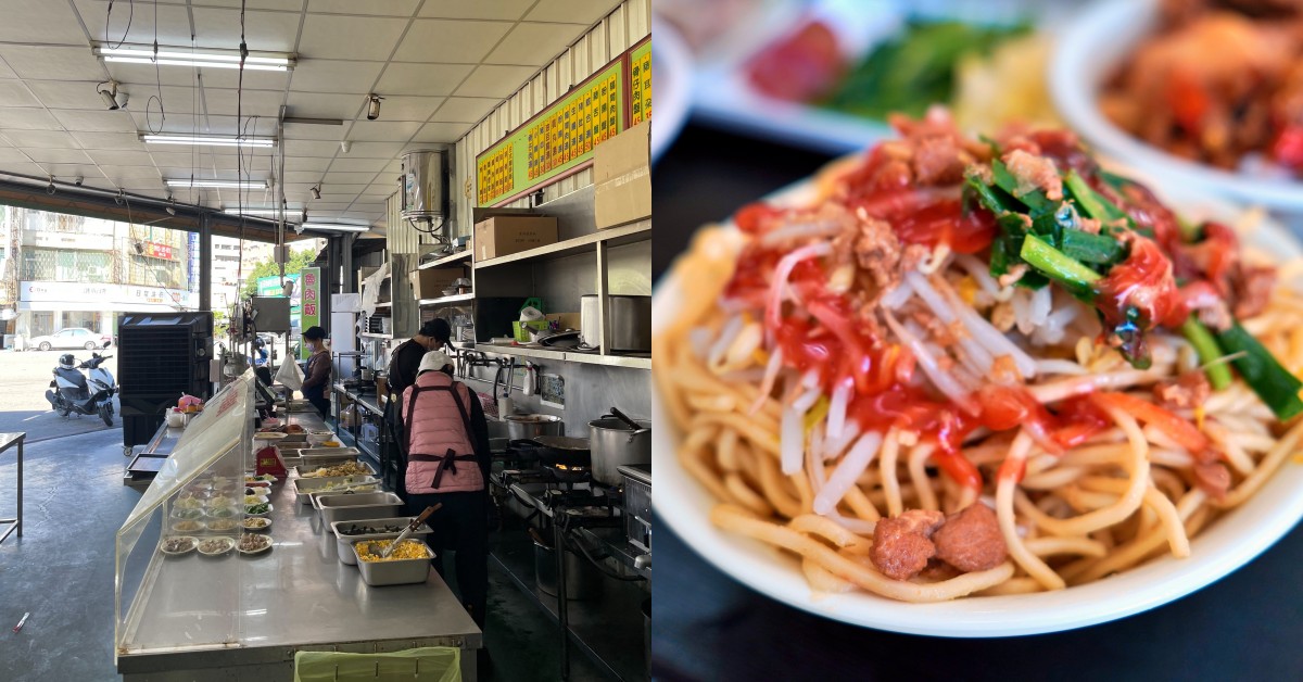 來這裡必點的絕對就是招牌的炒麵了!一碗30元滿到快爆出來,裡頭均勻分散鹹香的鬆軟肉末,麵體軟硬適中又帶勁,油香油香讓人感到滿足。不過畫龍點睛的還是那撒在麵上點綴的韭菜和豆芽菜,有去膩爽口的功能,雖然只是配料卻非常重要。如果喜歡甜辣口味,一定要把桌上的辣椒醬擠下去,可說是台中道地的吃法,甜中微嗆又帶鹹,有如把一碗炒麵提升到另一個層次。