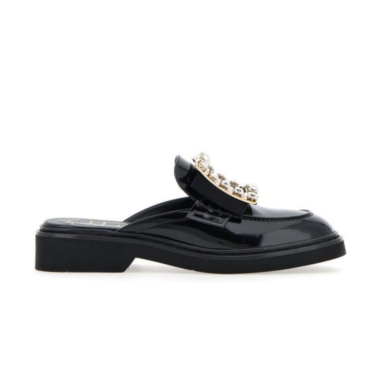 Roger Vivier 2025春夏「方釦鞋」推薦8:黑色漆皮鑽扣穆勒鞋