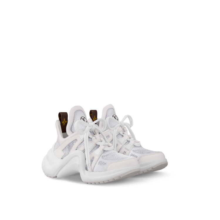 LV鞋款設計向來都很大膽,好比這雙Archlight運動鞋就運用很搶眼的波浪形線條,搭配帶有建築感的立體輪廓,形塑出強烈造型感,而鞋後跟點綴特別上老花Monogram帆布標籤,巧妙在視覺層次上點綴亮點,酷帥氣場很對個性女孩的胃口!(價格:NTD 54,500)