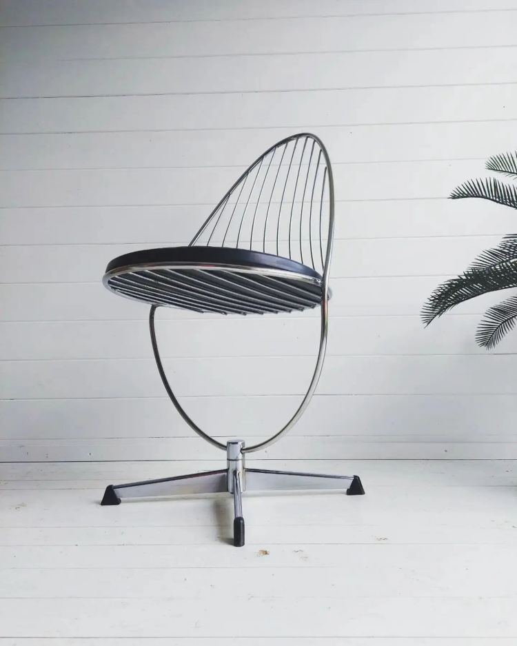 由丹麥設計大師Poul M. Volther所設計,日冕椅「Corona Chair」誕生於1964 年,靈感來自日全蝕時的日冕光環,尺寸遞進的橢圓形軟墊,層層構築出如脊椎般的結構,椅背與座墊懸浮於拉絲鑄鋁框架上,精準體現北歐功能主義設計哲學——強烈的雕塑感、原創性、大膽挑戰傳統座椅的設計原型,不僅讓它成為時尚影像中的常客,也一躍成為全球的設計經典之一。
