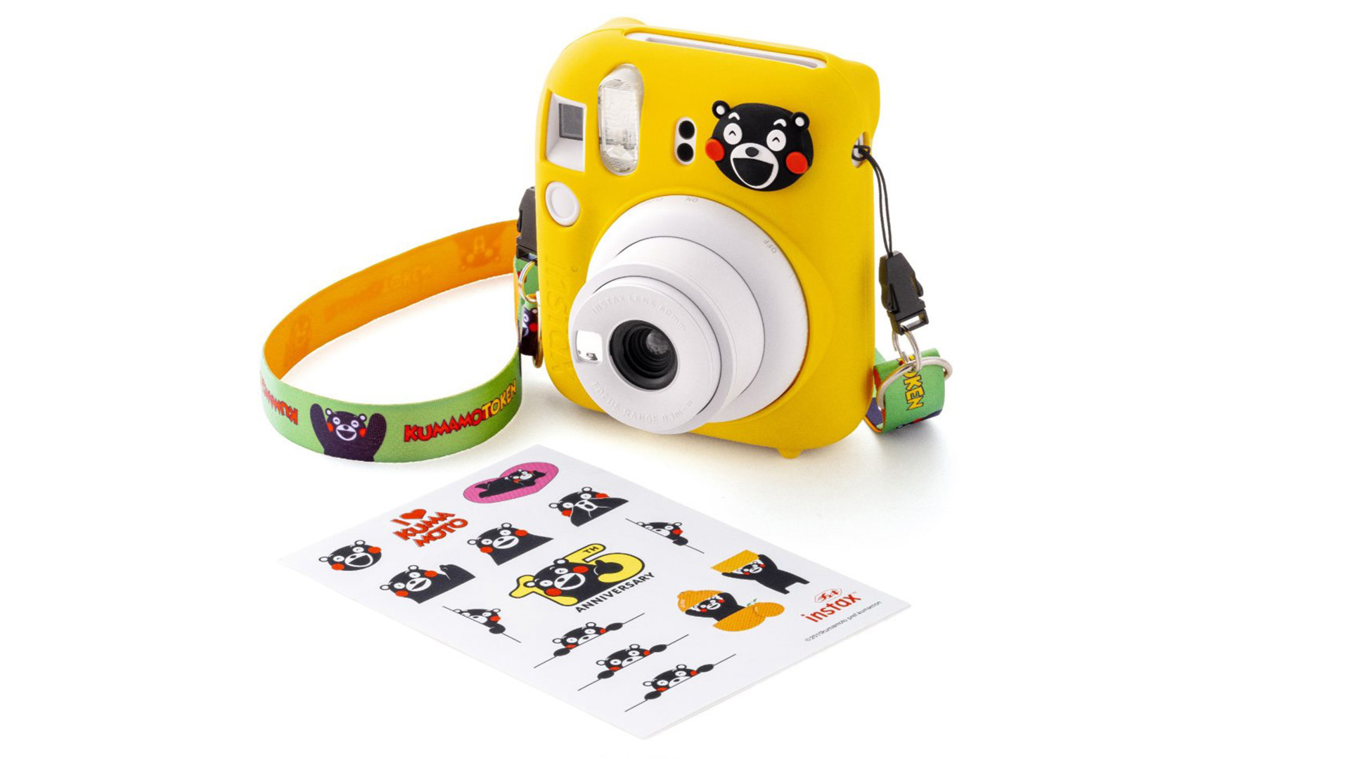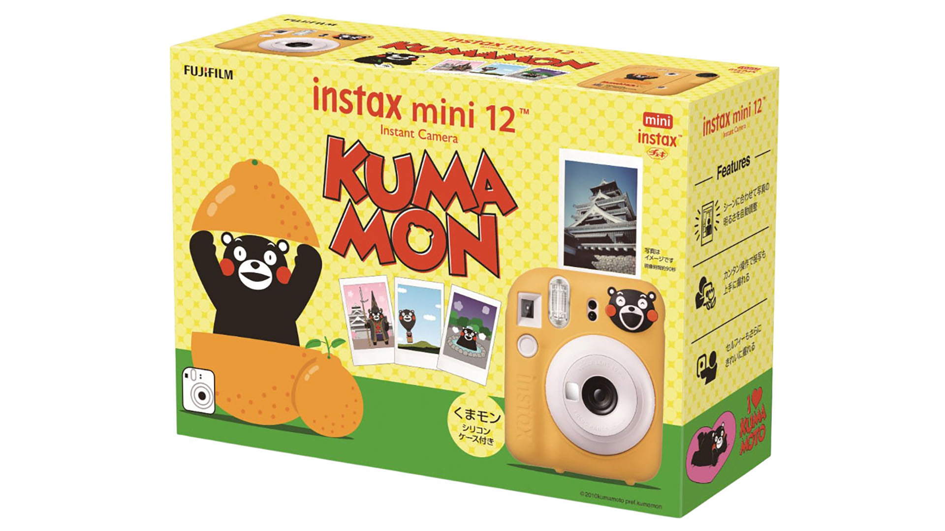 富士日前於官網宣布,將在 3 月 12 日正式發售 instax mini 12 馬上看相機熊本熊限量套裝版,以歡慶熊本熊誕生 15 週年。熊本熊限量套裝版是以 instax mini 12 陶瓷白為主要產品,再加上有亮眼黃色並附有熊本熊圖案的矽膠外殼,以及一條熊本熊設計的背帶和一張有多種熊本熊圖案的貼紙。