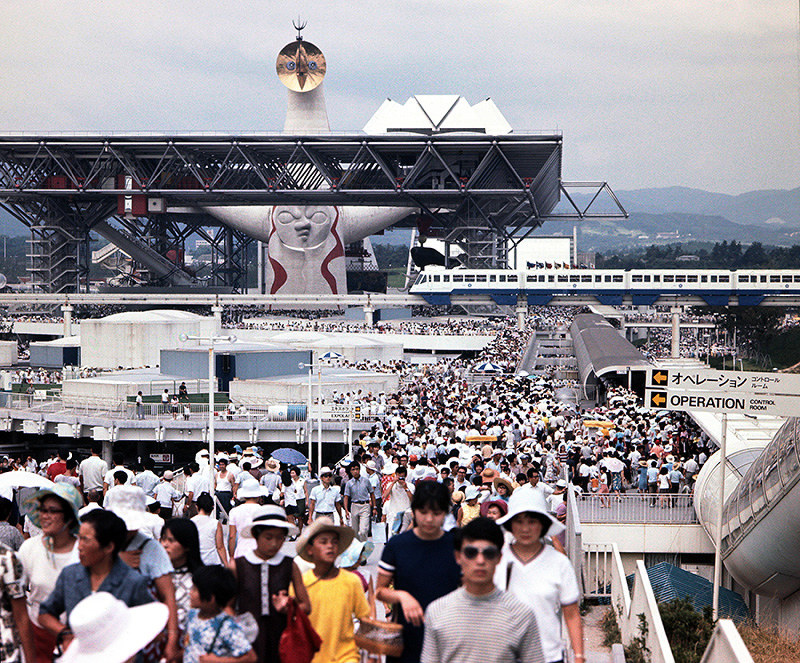 當時的日本,正處於二戰後經濟蓬勃發展的時代,剛從戰敗國復甦的日本社會,正好需要一場大型的國際盛宴,來宣告他們的復甦以及回歸。1970年的大阪萬博以高達70公尺的標誌性建築「太陽之塔」為中心,展示了非常多當時的科技成果與未來展望,其中,在1969年被阿波羅計畫帶回來的月亮石,也在這一次的萬博中展出,並成為了當時的超熱門話題。