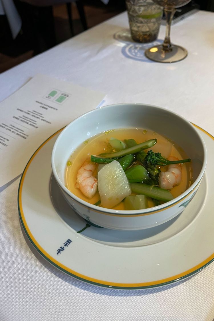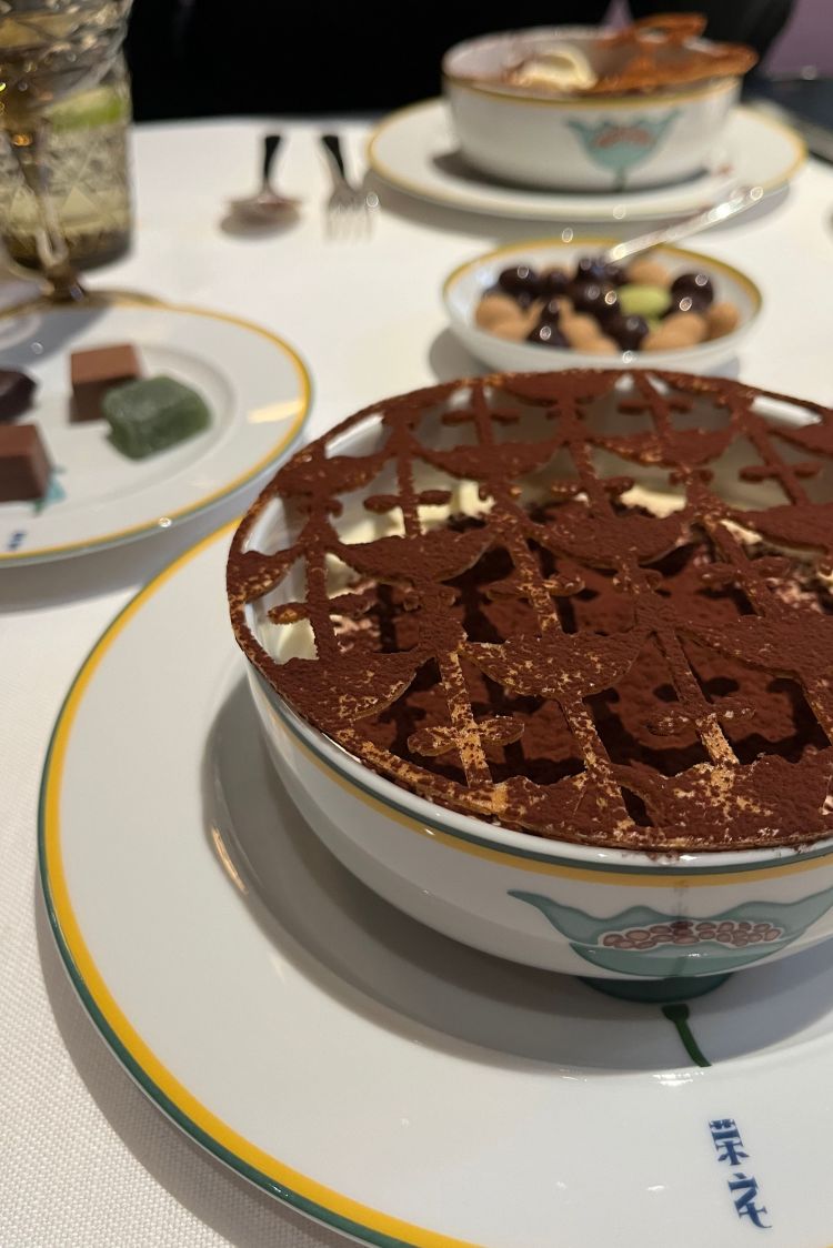 在正餐體驗上,迷上精心設計一系列餐單,從金槍魚醬小牛肉薄片、香烤菌菇、清燉雞湯、牛肉餡義餃,再到漫長酒香尾韻的提拉米蘇,主廚 Diego Crosara 完美地揉入西方與東方之味蕾,同時亦體現王家衛的電影世界觀;另一邊,也高度還原 Marchesi 1824 米蘭百年咖啡館的語彙,呈現標誌性的 Prada Caffè,靜靜地品嚐一口巧克力香。