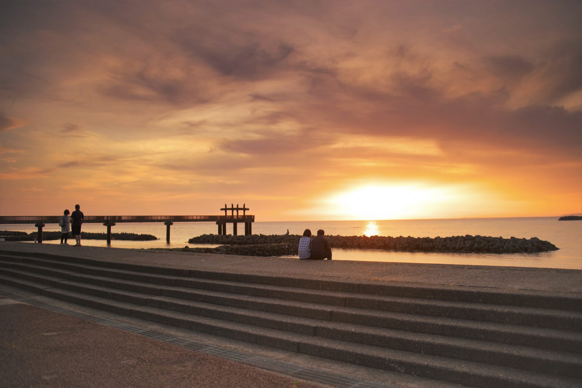 在「道之驛 越後出雲崎天領之里」內,有一座長達102公尺的木橋「夕凪橋(夕凪の橋)」,優雅地向日本海延伸,成為欣賞落日美景的絕佳地點。傳說中,將鎖鏈綁在橋的欄杆上並掛上鎖,便能祈願戀愛圓滿,因此這裡也被譽為戀人們的聖地,吸引無數情侶前來見證愛情。當夕陽緩緩沉入海面,天空與海洋染上一片溫暖橙光,為浪漫時刻增添無與倫比的氛圍。