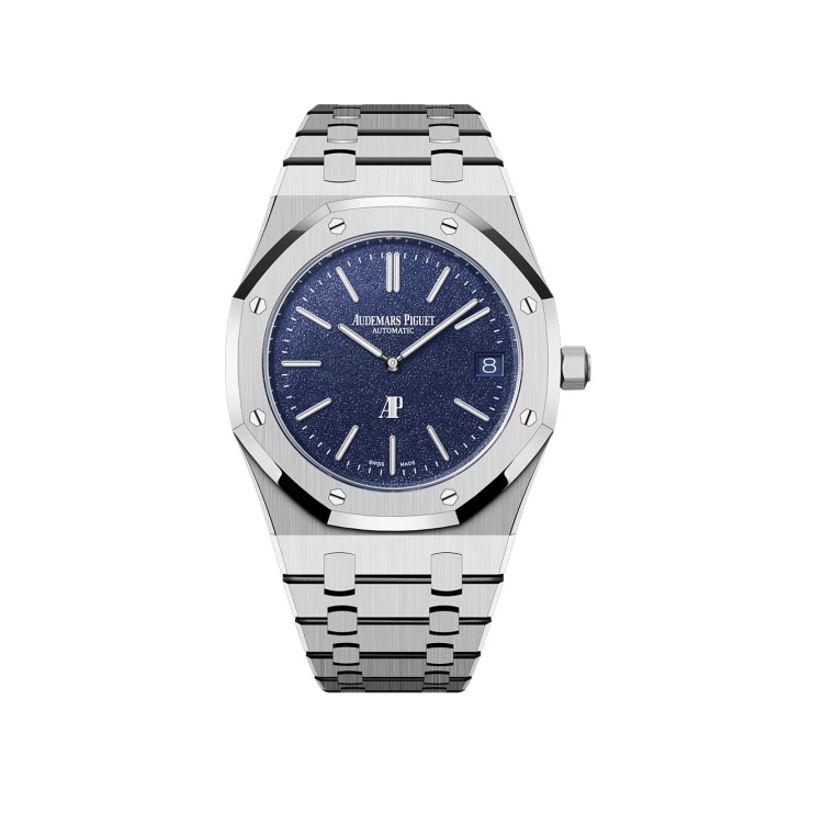 若說設計是情感的骨架,那麼 Royal Oak 皇家橡樹 Jumbo 超薄款,就是那種把肌理與線條發揮到極致的建築鉅作。8.1mm 的白金錶殼內藏 3.2mm 的 7121 機芯,藍色粒面錶盤上時標閃耀,承襲了50年來的經典靈魂,如今則換上更輕薄、優雅卻無損霸氣的新姿態。(價格約 NTD 2,800,000)