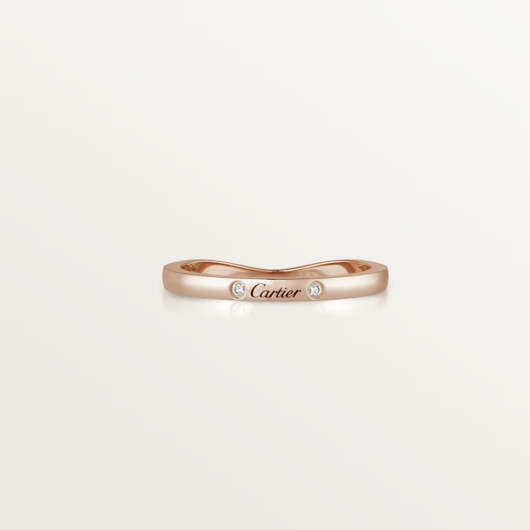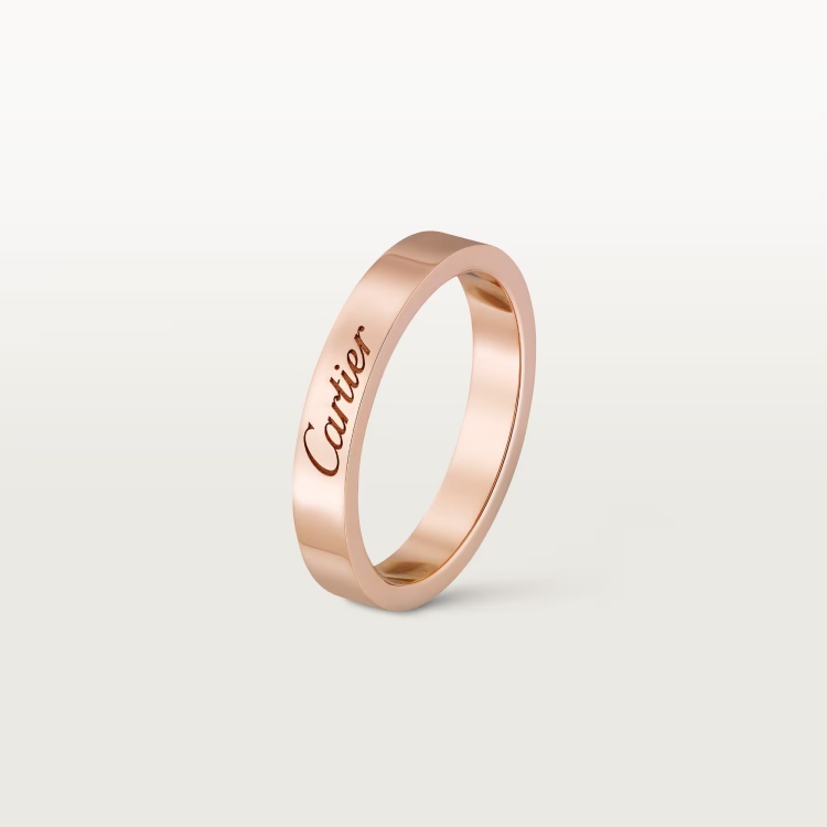 C de Cartier 戒指以簡約的設計為主,寬3毫米的戒圈以18K玫瑰金打造,外觀沒有花俏裝飾,唯有那刻劃在戒身的品牌字樣靜靜地訴說身份。這款設計猶如一封寫給自己或心上人的情書,無須高調喧囂,只需一個小細節,就足以道出深情。其簡潔線條呼應現代極簡風格,但厚實的金屬感又保有份量與儀式感,讓這枚戒指成為風格與情感兼備的經典之選。(價格 NTD 40,000)