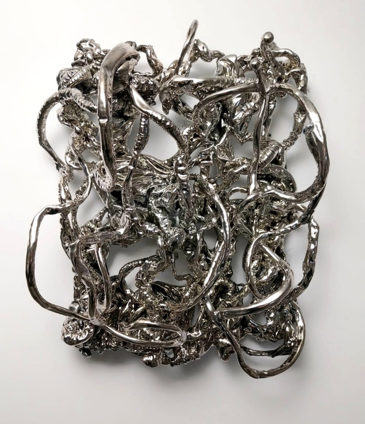 Espacio Valverde Hugo Bruce, “Origins I”, 2025, Resina plateada, 46 x 36 cm. Image courtesy of Espacio Valverde.
