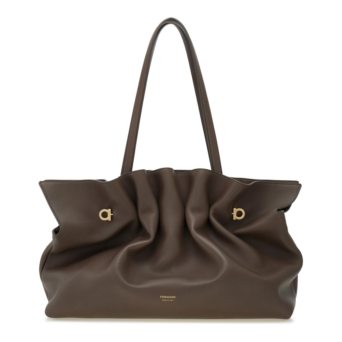 成功年輕化的 Ferragamo,在近日推出一款受人注目的中大型包款,柔軟的包身運用代表性的 Gancini 金扣作為固定,使其呈現出細緻的抓皺,其宛如禮服垂墜的摺痕,也把優雅的氣質展現其中。(價格店洽)