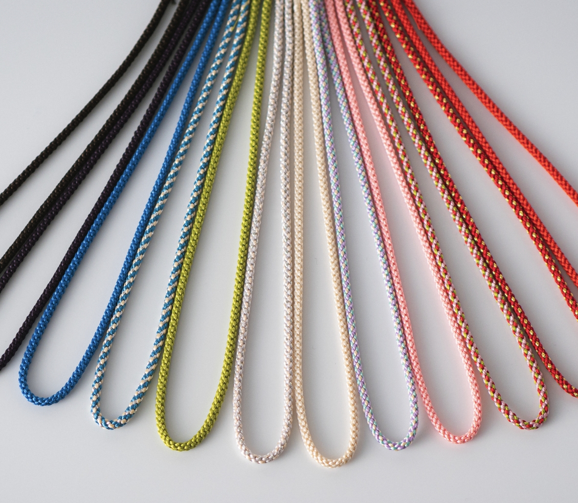 外袋挑完之後,還要選擇掛繩,這邊所提供的掛繩來頭也不小呢!是由專門製作京都組鈕編繩(京くみひも)的老舖所編織而成的喔,每一條都能感受到京都傳統的工藝之美。
