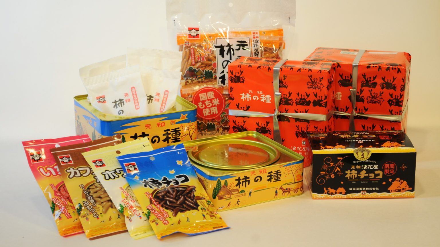 現今日本經典零食之一的柿種米菓(柿の種),其實最早是由新潟老舖浪花屋製菓的創辦人在1924年所創製而成。浪花屋最初於1923創業,原本以使用粳米製作煎餅為主,後來引進大阪的米菓技術,轉為使用糯米製作米果,因此也將店名取為「浪花屋」,象徵其與大阪米菓的淵源。