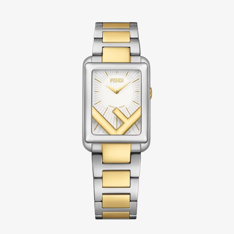 Fendi 將品牌標誌性的「F」幻化成時間語言,這款 F is FENDI 腕錶如同穿上高訂西裝的都會女郎,簡潔中暗藏張力。22.5×32mm的不鏽鋼錶殼配上蛋白石錶盤,浮雕金銀雙色線條將時分刻劃得井然有序。金黃色太子妃指針與V型「倒F」標誌的設計,使這只錶如同一枚「時間盾牌」,時尚感十足又帶點玩味。無論是搭配中性西裝或飄逸洋裝,皆能展現女性剛柔並濟的力量。(價格 NTD 45,900)