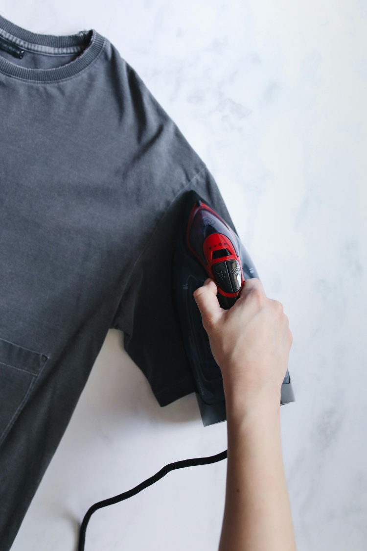 最後再重複壓燙一兩次,加強定型效果,讓布料在「熱定型」的狀態下完全乾燥。燙完之後不要立刻晾掛,建議平鋪在通風處自然晾乾,避免重力拉扯再次讓領口變鬆。等它完全乾透後,一件原本快進垃圾桶的 T-shirt,馬上又能變回那件你最愛、最百搭的時尚神器。