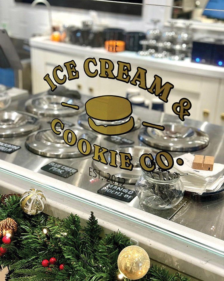 每一款冰淇淋三明治,都從一塊自家研發、現烤出爐的美式餅乾開始。鬆軟中帶著微微焦香、香甜不膩,咬下去立刻陷入麵香與奶香交融的節奏,再與中間厚實綿密的冰淇淋夾心一拍即合。最經典的「香草脆餅冰淇淋」不添加人工香精,選用真正的香草籽入料,細緻、優雅,甚至帶點療癒力。而包覆香草冰淇淋的餅乾,也絕非一般可可風味草率了事,以含可可脂達74%的可可豆製作,苦甜交織的層次搭配香草的溫潤氣息,達成細膩平衡。