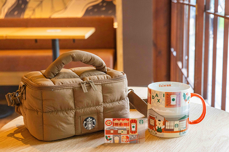 不只限定飲品,三款限定限量周邊也值得你特別購入。「大溪風情隨行卡」與「大溪風情馬克杯」兩款城市紀念商品,以日式建築屋瓦線條、大溪老街蜿蜒巷弄、以及豆干老店的懷舊風貌為靈感,將這座擁有濃厚歷史底蘊的山城縮影,濃縮進一張卡片與一只杯子中(售價NTD 150~580)。最讓人會心一笑的,莫過於這款以豆干為靈感的「棕女神尼龍肩背保冷袋」,從大溪最具代表性的美食出發,將豆干的方正輪廓轉化為實用的包袋,溫潤的棕色大地調不僅呼應豆干本身的色澤,也傳遞出自然穩重的風格。(售價NTD 600)