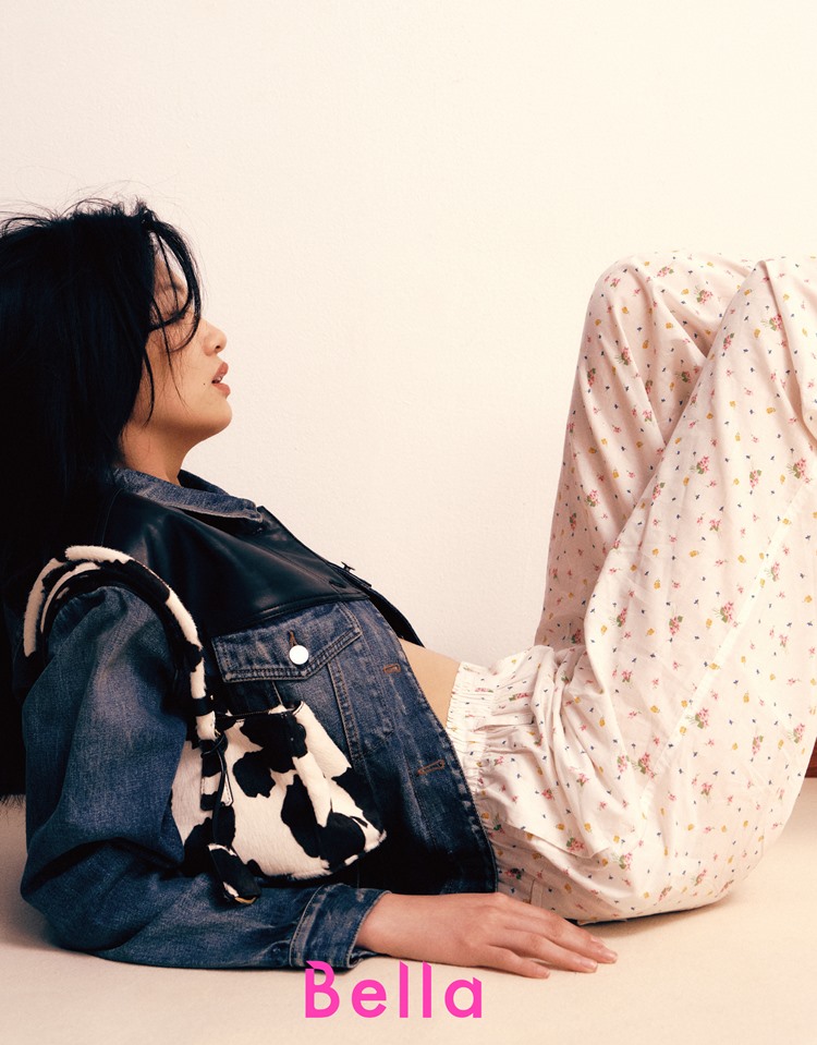 Prada女孩的百變完全在這套Look中顯現,皮革拼接牛仔外套,牛仔材質經過水洗處理展現復古魅力,異材質拼接讓輪廓線條更明顯,舉手投足間展現出最自然且修身廓型;下身搭配的碎花長褲,創造反差視覺的趣味層次,展現出她獨有的穿搭靈魂。