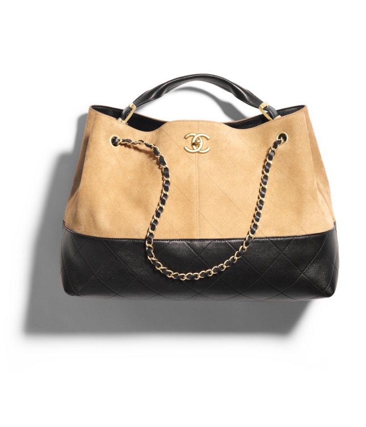 Chanel 2024/25工坊系列包款4. 米黑色麂皮拼接大型購物包