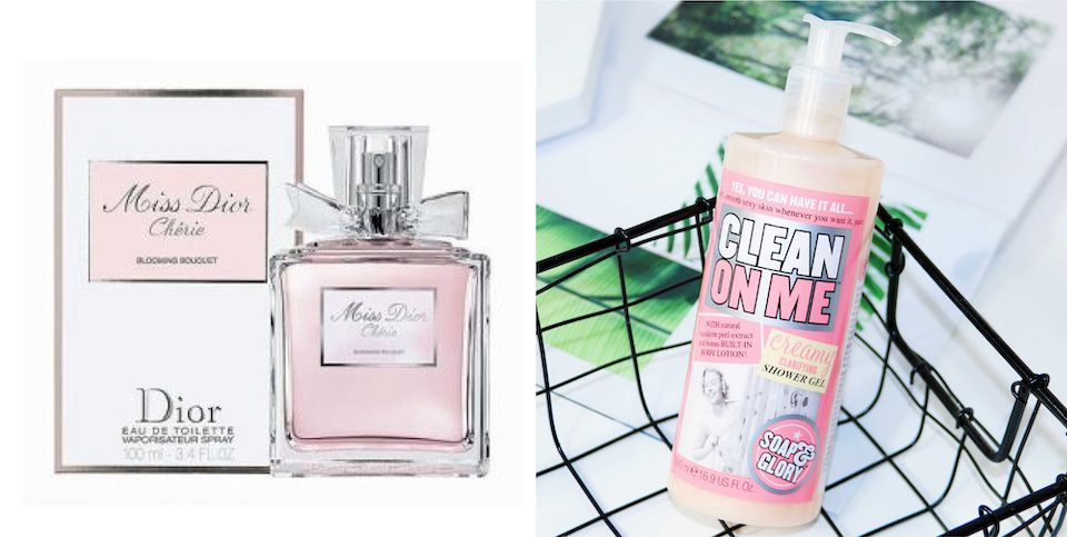 「Miss Dior Cherie 淡香水 50ml,NT2450」X「SOAP & GLORY CLEAN ON ME奶油沐浴露500ml, £6.5」