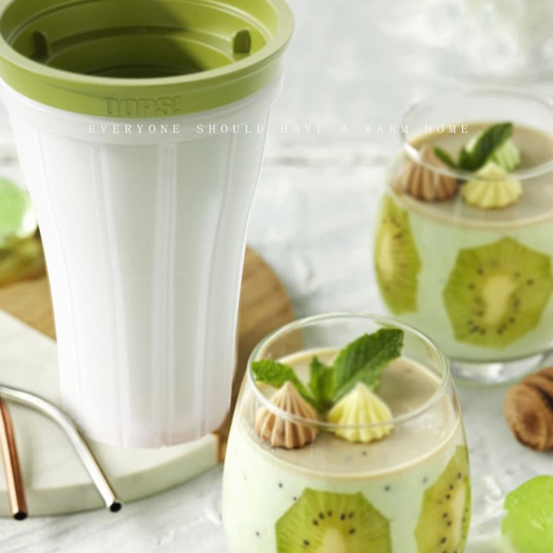 最後要介紹的則是另一款的捏捏製冰杯,它的外型就像超商賣的思樂冰杯一樣,有一個半圓形的蓋子和吸管孔。使用方式與Rose roll捏捏冰沙杯相似,但製冰的順序卻有點不同。捏捏製冰杯是要先將杯子放到冰箱冷凍4~6小時之後,確定保冰袋的已變為固態,才能將果汁倒入製冰杯中,接著就可以對杯身反覆擠壓,果汁就會瞬間變身為冰沙,是不是超神奇的呢!