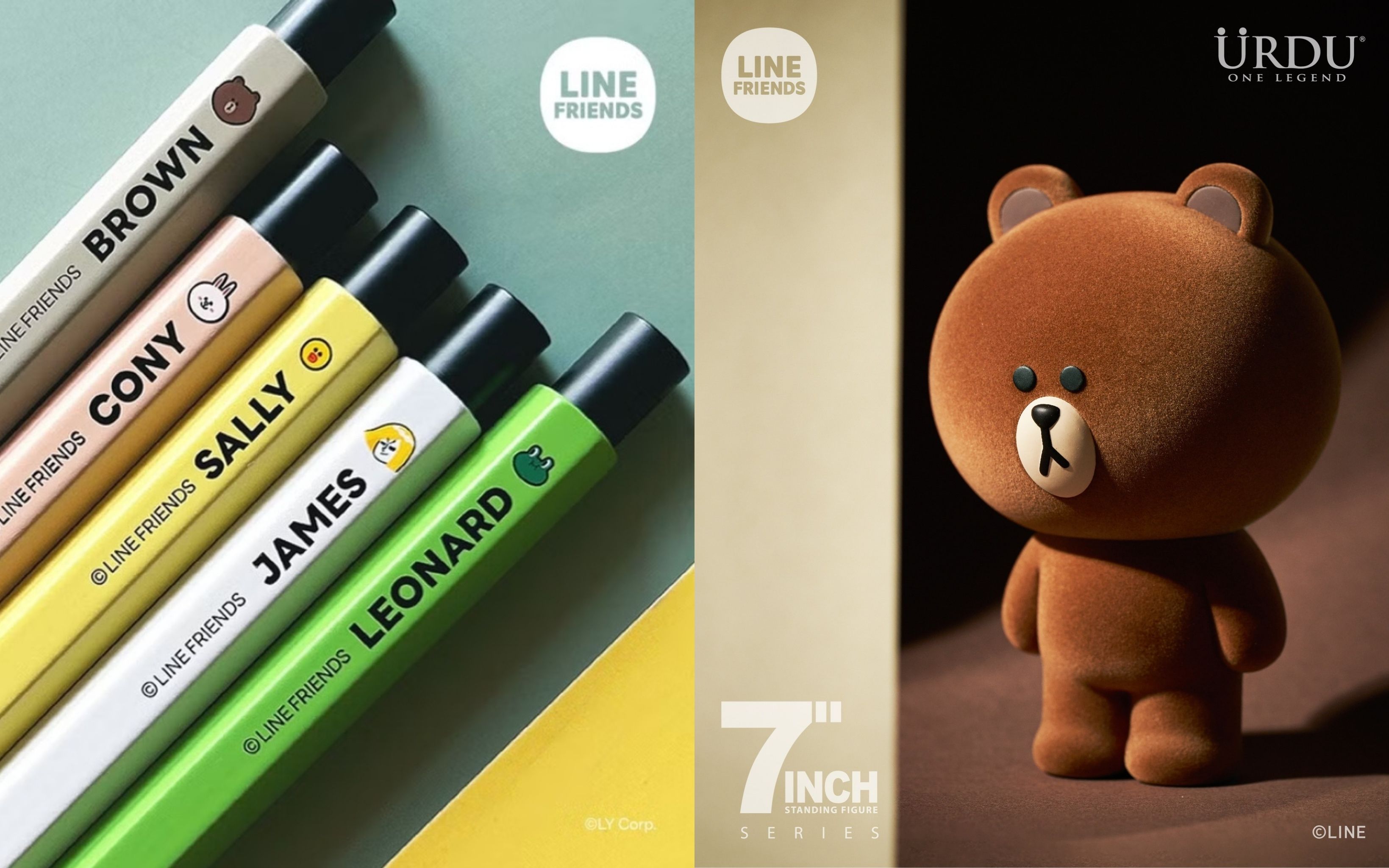 URDU ONE LEGEND是香港藝術玩具品牌,旨在將藝術融入生活,以簡單有趣的設計,包含小巧精緻、舒適觸感等聞名,LINE FRIENDS每年都與URDU ONE LEGEND 有聯名合作,近期推出的LINE FRIENDS meets URDU 7”站姿植絨公仔,熊大披上植絨外衣搭配呆萌的表情,不僅可愛更值得收藏,光是擺在辦公桌上,就可以療癒一整天呢!