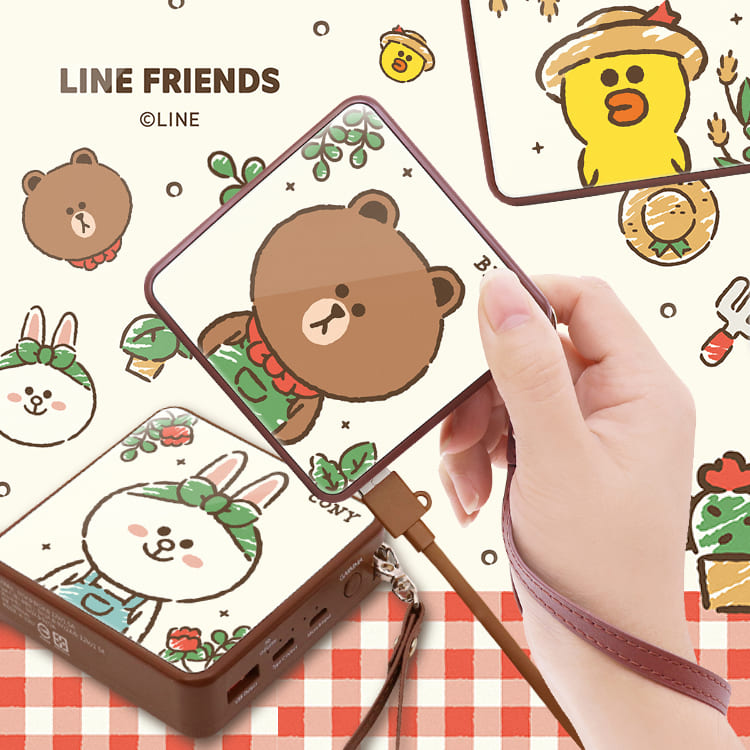 實用必收清單3.正版Line Friends 花園系列玻璃鏡面PD快充行動電源