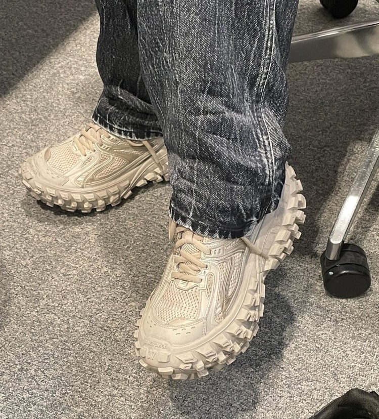 這次的聯名不僅僅是在鞋上印上雙方 Logo 而已。Qian 將 Balenciaga 擅長的破壞美學注入其中,在製作上她將側邊 Formstrip 刻意撕裂,營造破損質感,此外絨面革仿舊處理,強化「穿過、破過、活過」的故事性,而鞋後跟尺碼標記外露,打破精品對整潔的執念,這次的鞋款整體延續 Balenciaga 一貫的怪誕風格。